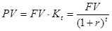 Таким образом, дисконтированная (приведённая, текущая), стоимость представляет собой оценку стоимости будущих доходов от вложения средств в инвестиционный проект в пересчёте на момент времени проведения оценки. На практике дисконтированная стоимость позволяет вычислить размер инвестированной суммы, необходимый для получения определённой прибыли по истечении заранее известного периода времени. Математически дисконтированная стоимость рассчитывается следующим образом [10]: