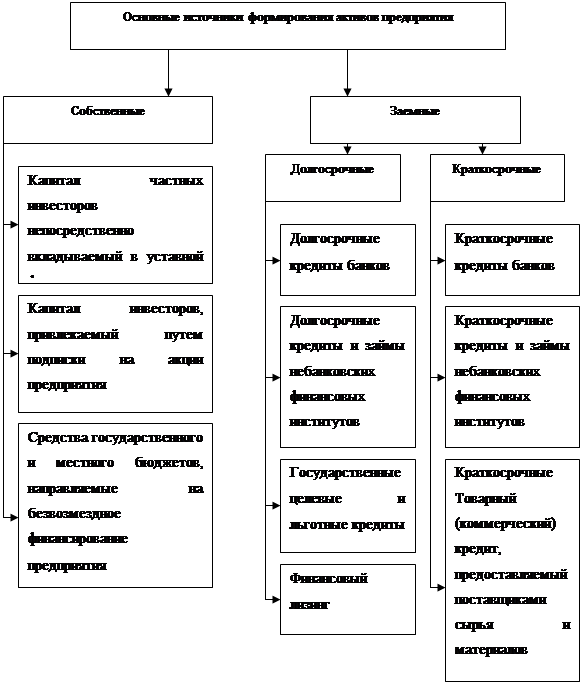 С учетом избранной схемы финансирования активов формируется система источников привлечения капитала на предприятие. На первом этапе жизненного цикла предприятия состав этих источников ограничен и носит несколько специфический характер. Основные из этих источников формирования активов создаваемого предприятия приведены на рис. 1.