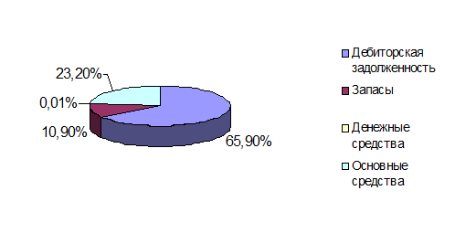 Рис. 3 показывает, что основную часть активов составляет дебиторская задолженность (больше половины), незначительную часть активов составляют запасы, только 0,01%.