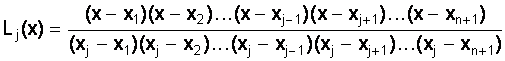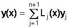 является требуемым многочленом степени n; он равен 1, если x=xj и 0, когда x=xi, i¹j. Многочлен Lj(x)×yj принимает значения yi в i-й узловой точке и равен 0 во всех других узлах. Из этого следует, что