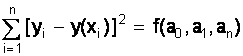 Вычисленная кривая у(х) в некотором смысле даёт сложное множество значений уi. Метод наименьших квадратов утверждает, что следует выбирать многочлен, минимизирующий функцию.