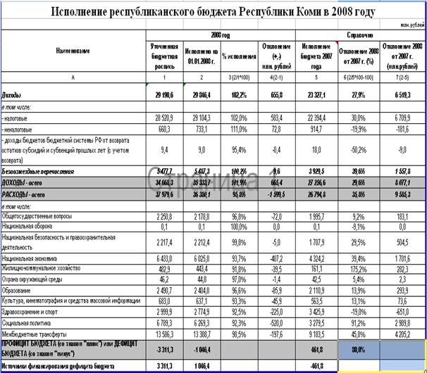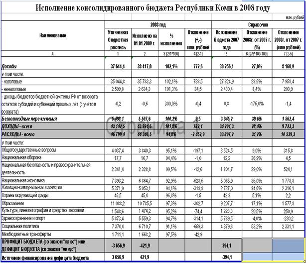 В целом исполнение консолидированного бюджета Республики Коми и республиканского бюджета Республики Коми за 2008 год представлено в таблицах 3,4.