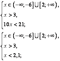 равносильно совокуп-ности двух систем неравенств:
