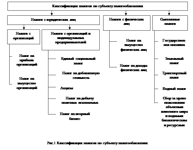 Также налоги классифицируются по субъекту налогообложения. Классификация по субъекту представлена на рис.1. [4]