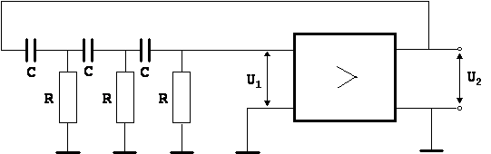 Генератор состоит из пассивной линейной части, включающей резисторы с сопротивлением R и конденсаторы с емкостью С, и электронного усилителя с нелинейной характеристикой.