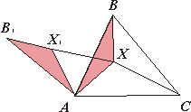 И становится ясно, что l достигает наименьшего значения тогда, когда точки X’ и X лежат на отрезке B’C. (Заметим, что положение точки B’ определено – она вершина равностороннего треугольника ABB’).
