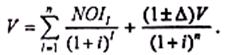 При прогнозе цены продажи в конце периода владения редко представляется возможность определить абсолютное значение этой величины. Естественно определять относительное изменение стоимости, опираясь на выявленные тенденции изменения ценообразующих факторов, т. е. цена перепродажи определяется как (1 ± Δ)V, где Δ — долевое изменение стоимости за период владения, а V— первоначальная (текущая) стоимость. Тогда
