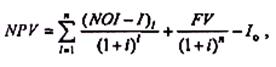 Из приведенных трех методов определения ставки дисконтирования наиболее точным является метод рыночного анализа. В двух других методах также используют рыночный подход для определения необходимых исходных параметров, а расчет требуемой ставки дисконтирования с помощью них только корректируется. Чистая текущая стоимость NPV, или чистая дисконтированная стоимость, в анализе инвестиционных проектов представляет собой алгебраическую сумму текущей стоимости всех положительных и отрицательных элементов денежного потока за инвестиционныйпериод. В оценке NPV это разница между текущей стоимостью всего потока чистого годового дохода N01 за период владения, включая выручку от реверсии, и текущей стоимостью инвестиций — первоначального и последующих капиталовложений.