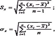 Показатели вариации. Средние величины характеризуют статистический ряд числом, но не отражают изменчивость наблюдавшихся значений признака, т. е. вариацию. В практической деятельности оценщика в качестве описательных характеристик показателей вариации в основном используются значения стандартного Sx и среднеквадратичного отклонения аx: