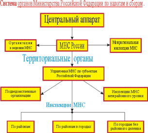 Налоговые органы - юридические лица. Они имеют самостоятельную смету расходов, текущие счета в учреждениях банков, печати. Подчиненность внутри структуры осуществляется по вертикали: Министерству Российской Федерации по налогам и сборам и его вышестоящим органам. Структура Управлений по субъектам федерации утверждается министерством. Министерством же определяются функции структурных подразделений руководимых налоговых органов [10, с. 43].