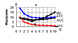 Рис. 4. Взаимосвязь общих, средних и предельных издержек производства