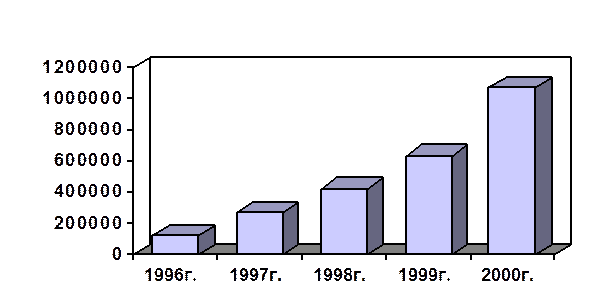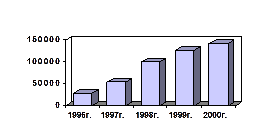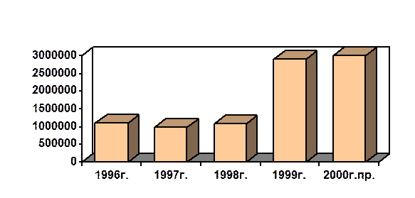 Как следует из табл.2 сумма поступлений по налогу на прибыль за последние три года ежегодно возрастает. Так, по прогнозу на 2000г. поступления платежей увеличатся против уровня 1996г. в 2,7 раза. Это наглядно видно и на рис.3