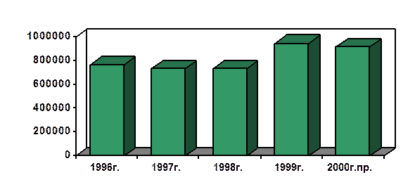 По прогнозу на 2000г. сумма налога составит 2058311 тыс. руб., что выше уровня 1999г. на 210019 тыс. руб.