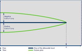 Цена фьючерса может быть либо ниже, либо выше, чем цена базового актива. Это зависит от того, являются ли затраты на поддержание позиции положительными или отрицательными. Базис убывает при приближении срока исполнения. Этот эффект называется «сходимость базиса» и может быть объяснен тем фактом, что при уменьшении оставшегося времени обращения фьючерса, снижается как стоимость фондирования, так и доход от облигаций. В день исполнения базис равен нулю. Таким образом, цену фьючерса можно считать эквивалентом цены базового инструмента.