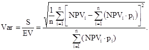 Коэффициент вариации. Коэффициент вариации (Var) является широко применяемым показателем проектного риска. Коэффициент вариации определяется по формуле: