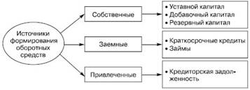 Источники формирования оборотных средств отражены в пассиве баланса предприятия. Исходя из классификации оборотных средств предприятия источники делятся на собственные, заемные и привлеченные (рис. 2).