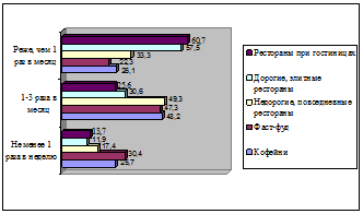 Диаграмма 2. Распределение ответов на вопрос: «Какие именно заведения Вы посещаете и как часто?» (среди респондентов, посещающих заведения общественного питания)