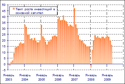 Даже в условиях проблем с привлечением внешнего финансирования прирост инвестиций в основной капитал превышает 15% в начале 2009 г.