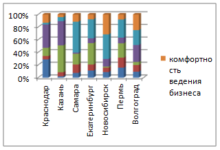 Рисунок 1. Результаты рейтинга Forbes «Лучшие города для Бизнеса», июнь 2009 года, по показателям создания условий безопасности для бизнеса