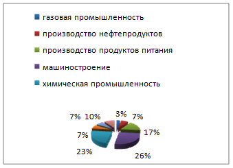 Рисунок 1.Распределение количества инвестиционных проектов в различных отраслях