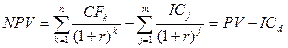 В случаях, когда деньги в проект инвестируются не единовременно, а многократно на протяжении нескольких периодов, то для расчета NPV применяется следующая формула[3]: