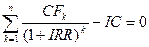 Под внутренней нормой прибыли инвестиции понимают значение коэффициента дисконтирования r, при котором NPV проекта равен нулю. Иными словами, дисконтированные доходы от проекта равны инвестиционным затратам. IRR находится из уравнения: