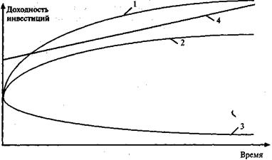 Инвестирование: 1 - эффективное, 2 - активное, 3 - пассивное; 4 - среднеотраслевая доходность