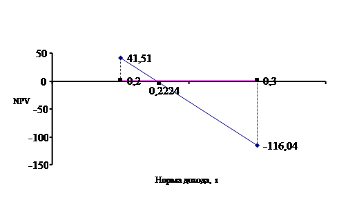 Данный график наглядно демонстрирует точку внутренней нормы прибыли 22,24% рассчитанную математически.