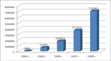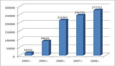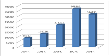 Рис.2. Чистая прибыль в 2004-2008 гг.