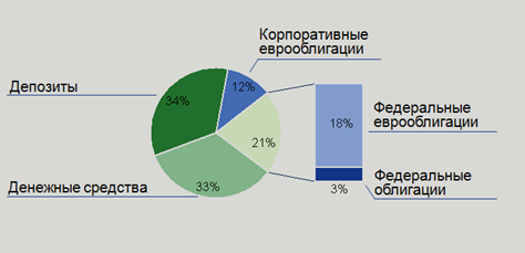 Далее показана структура портфеля Компании. Стоимость активов приведена с учетом НКД и процентов по депозитам