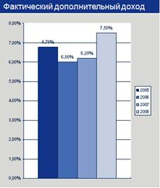 Рис.7. Фактический дополнительный инвестиционный доход Компании в 2005-2008 гг.