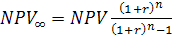 2) Рассчитываем суммарный приведенный эффект по формуле бесконечно убывающей геометрической прогрессии