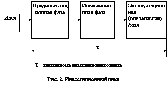 Разработка инвестиционного проекта от инвестиционной идеи до его реализации в организации может быть представлена в виде инвестиционного цикла, состоящего из трех фаз (рис. 2).