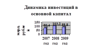 Инвестиционные поступления в промышленное производство по-прежнему занимают основной удельный вес в общем объеме инвестиций в основной капитал (в 2008 г. – 59,9 %).