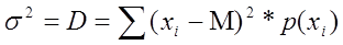 Важной характеристикой, определяющей меру изменчивости возможного результата, является, дисперсия (D) - средневзвешенное квадратов отклонений случайной величины от ее математического ожидания (то есть отклонений действительных результатов от ожидаемых):