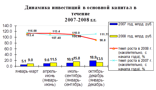 Объем инвестиций за 2008 год составил 49,9 млрд. рублей или 112% к объему инвестиций за прошлый год в фактических ценах (в сопоставимых – 90,8%).