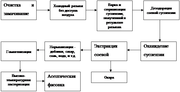 Технологическая схема производства фасованного соевого молока включает в себя следующие операции (рис. 2).