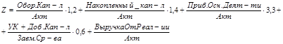 Теперь оценим вероятность банкротства предприятия с помощью модели Z-коэффициента (разработчик Эдвард Альтман).