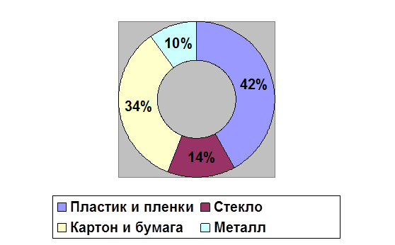 Рис. Структура российского рынка упаковочных материалов по итогам 2008 года.[10]