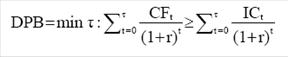 Дисконтированный период окупаемости – это период времени, в течение которого первоначальные вложения и другие затраты, связанные с инвестиционным проектом, покрываются суммарными результатами его осуществления, т.е. начиная с момента времени τ=DPB, данный проект уже не нуждается в каком-либо внешнем финансировании. Дисконтированный период окупаемости может служить критерием для принятия инвестиционного решения.