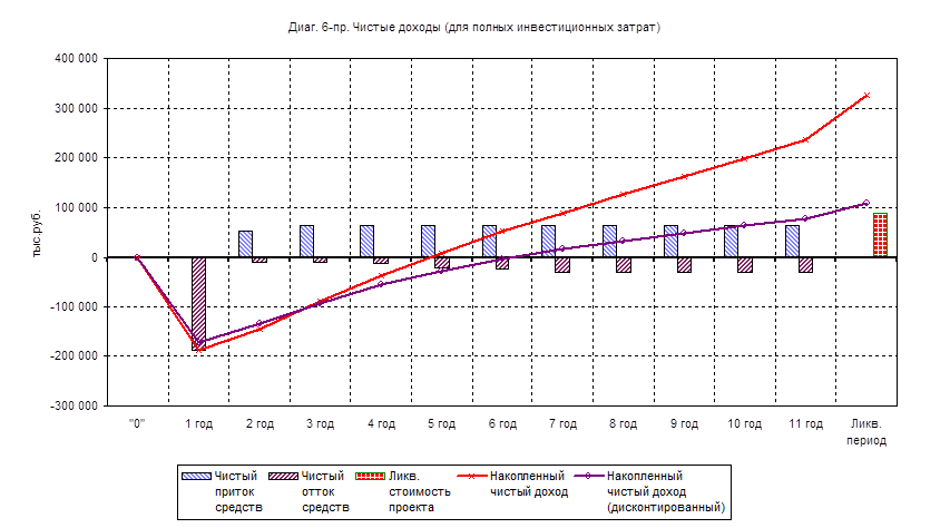 Доходность полных инвестиционных затрат определяется как отношение чистой текущей стоимости проекта (NPV) к дисконтированной величине инвестиционных затрат и составляет 65%. Чистые доходы предприятия представлены на рис. 5.