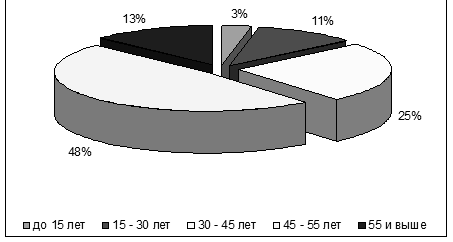Рис. 5.1 – Зависимость объема спроса от возраста клиента, %