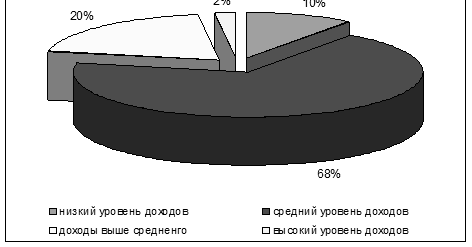 Рис. 5.3 – Зависимость объема спроса от уровня дохода клиента, %
