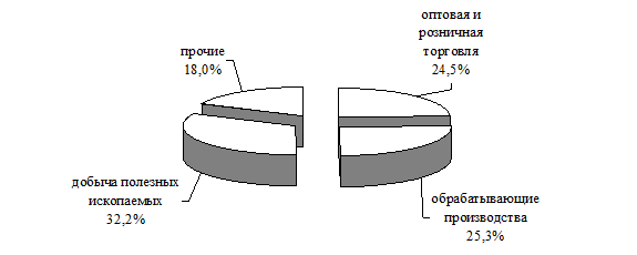 Рис. 2.7. Структура иностранных инвестиций в экономику России в 2004 г. по отраслям экономики, %