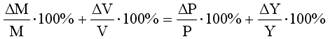 где (deltaМ/М х 100%) – темп прироста денежной массы, обычно обозначаемое m, (deltaV/V x 100%) – темп прироста скорости обращения денег, (deltaP/P x 100%) – темп прироста уровня цен, т.е. темп инфляции pi, (deltaY/Y x 100%) – темп прироста реального ВВП, обозначаемого g.