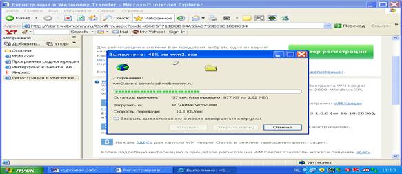 Д ля того, чтобы начать работу с платежной системой webmoneytransfer, необходимо зайти на сайт http://www.webmoney.ru , на главной странице перейти к закладке «регистрация», в открывшемся диалоговом окне заполнить предлагаемую форму ( анкетные данные ) с указанием своего адреса электронной почты, после чего на этот адрес будет выслан пароль доступа, который нужно будет ввести в окно регистрации. После этого появляется окно выбора программы, где детально описана инструкция по подбору оптимального программного обеспечения, а также имеются ссылки для загрузки инсталляционных архивов для работы: