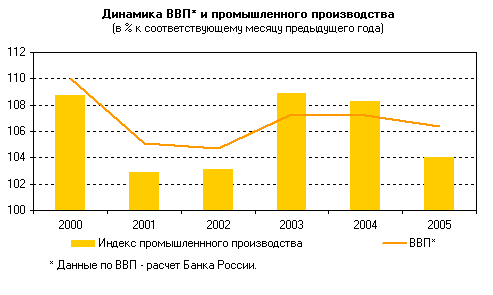 Динамика ВВП РФ за 2000-2005 гг. отражены на диаграмме 9.