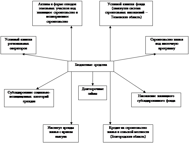 Схемы использования бюджетных средств в ипотечных программах различны, однако из-за их ограниченности эти средства не могут в достаточной степени служить основой для развития эффективной системы ипотечного жилищного кредитования (см. схему 1).