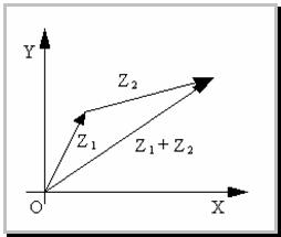 Сумма двух векторов с координатами (A1;B1) и (A2;B2) есть вектор с координатами (A1+A2;B1+B2). Поэтому, чтобы найти вектор, соответствующий сумме комплексных чисел Z1 и Z2 нужно сложить векторы, соответствующие комплексным числам Z1 и Z2.