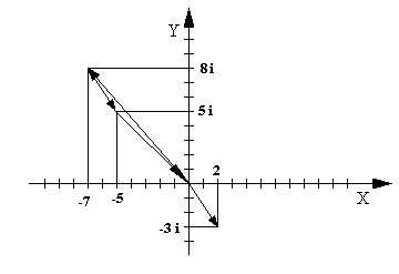 Z1 + Z2 = 2 – 7 + (–3 + 8)×i = –5 + 5×i